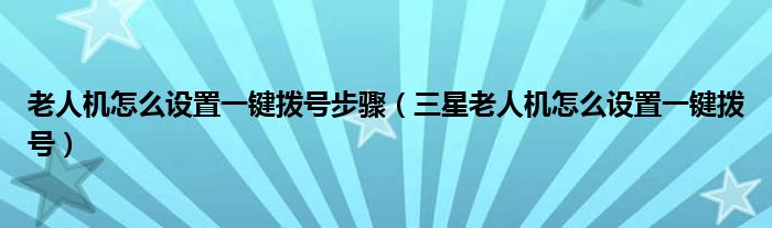 大家好,小育來為大家講解下。老人機(jī)怎么設(shè)置一鍵撥號步驟,三星老人機(jī)怎么設(shè)置一鍵撥號很多人還不知道,現(xiàn)在讓我們一起來看看吧!