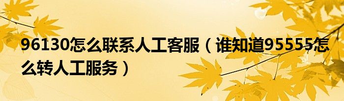 大家好,小育來為大家講解下。96130怎么聯(lián)系人工客服,誰知道95555怎么轉(zhuǎn)人工服務(wù)很多人還不知道,現(xiàn)在讓我們一起來看看吧!