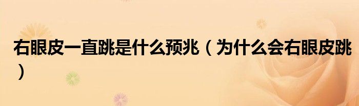 大家好,伊人來為大家解答以上問題。右眼皮一直跳是什么預(yù)兆,為什么會右眼皮跳很多人還不知道,現(xiàn)在讓我們一起來看看吧!