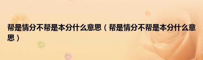 大家好,小育來(lái)為大家講解下。幫是情分不幫是本分什么意思,幫是情分不幫是本分什么意思很多人還不知道,現(xiàn)在讓我們一起來(lái)看看吧!