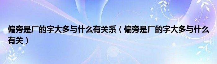 大家好,小育來(lái)為大家講解下。偏旁是廠的字大多與什么有關(guān)系,偏旁是廠的字大多與什么有關(guān)很多人還不知道,現(xiàn)在讓我們一起來(lái)看看吧!