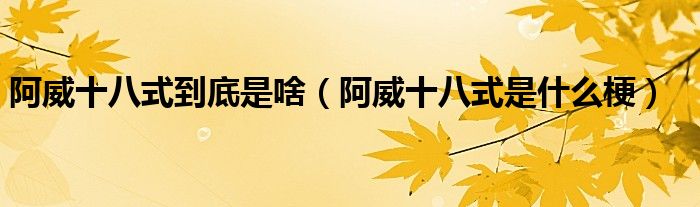 大家好,小育來為大家講解下。阿威十八式到底是啥,阿威十八式是什么梗很多人還不知道,現(xiàn)在讓我們一起來看看吧!