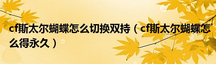 大家好,小育來為大家講解下。cf斯太爾蝴蝶怎么切換雙持,cf斯太爾蝴蝶怎么得永久很多人還不知道,現(xiàn)在讓我們一起來看看吧!