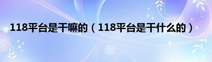 大家好,小育來為大家講解下。118平臺是干嘛的,118平臺是干什么的很多人還不知道,現(xiàn)在讓我們一起來看看吧!