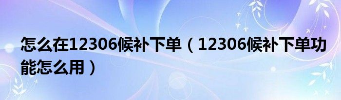 大家好,小育來為大家講解下。怎么在12306候補下單,12306候補下單功能怎么用很多人還不知道,現(xiàn)在讓我們一起來看看吧!