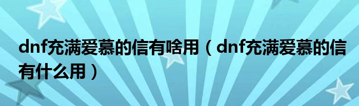 大家好,小育來為大家講解下。dnf充滿愛慕的信有啥用,dnf充滿愛慕的信有什么用很多人還不知道,現(xiàn)在讓我們一起來看看吧!
