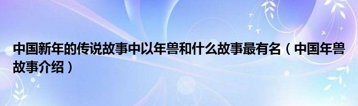 大家好,伊人來為大家解答以上問題。中國新年的傳說故事中以年獸和什么故事最有名,中國年獸故事介紹很多人還不知道,現(xiàn)在讓我們一起來看看吧!