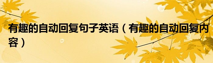 大家好,小育來為大家講解下。有趣的自動回復(fù)句子英語,有趣的自動回復(fù)內(nèi)容很多人還不知道,現(xiàn)在讓我們一起來看看吧!