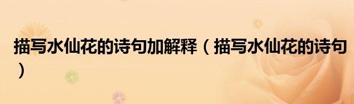大家好,小育來為大家講解下。描寫水仙花的詩句加解釋,描寫水仙花的詩句很多人還不知道,現(xiàn)在讓我們一起來看看吧!