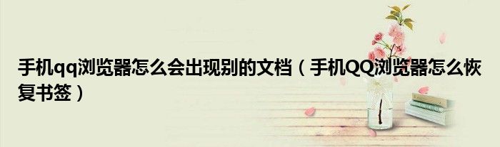 大家好,小育來為大家講解下。手機qq瀏覽器怎么會出現(xiàn)別的文檔,手機QQ瀏覽器怎么恢復(fù)書簽很多人還不知道,現(xiàn)在讓我們一起來看看吧!