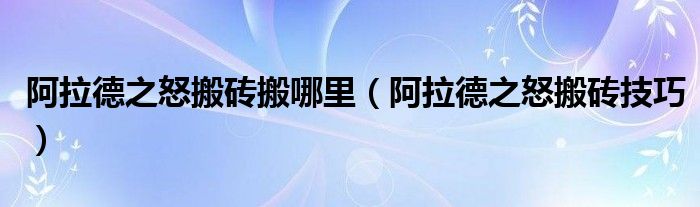 1、阿拉德之怒搬磚技巧?對阿拉德之怒搬磚技巧的介紹是什么