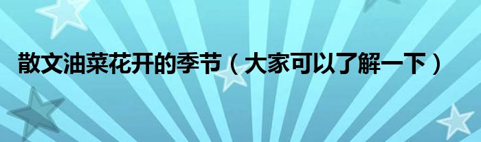 大家好,伊人來(lái)為大家解答以上問(wèn)題。散文油菜花開(kāi)的季節(jié),大家可以了解一下很多人還不知道,現(xiàn)在讓我們一起來(lái)看看吧!