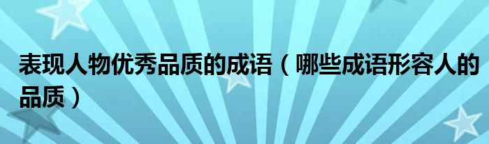 大家好,伊人來為大家解答以上問題。表現(xiàn)人物優(yōu)秀品質(zhì)的成語,哪些成語形容人的品質(zhì)很多人還不知道,現(xiàn)在讓我們一起來看看吧!