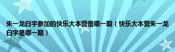 大家好,小育來為大家講解下。朱一龍白宇參加的快樂大本營是哪一期,快樂大本營朱一龍白宇是哪一期很多人還不知道,現(xiàn)在讓我們一起來看看吧!
