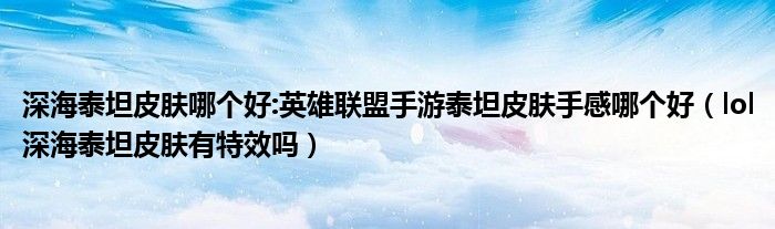 大家好,小育來為大家講解下。深海泰坦皮膚哪個好:英雄聯(lián)盟手游泰坦皮膚手感哪個好,lol深海泰坦皮膚有特效嗎很多人還不知道,現(xiàn)在讓我們一起來看看吧!