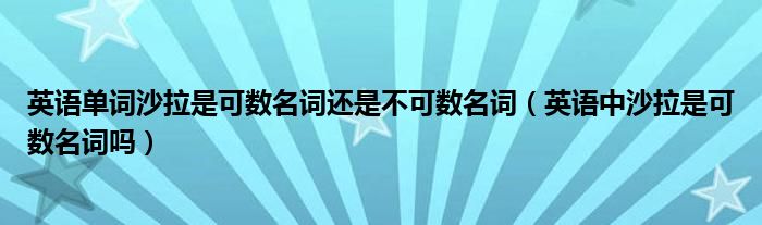 大家好,小育來為大家講解下。英語單詞沙拉是可數(shù)名詞還是不可數(shù)名詞,英語中沙拉是可數(shù)名詞嗎很多人還不知道,現(xiàn)在讓我們一起來看看吧!