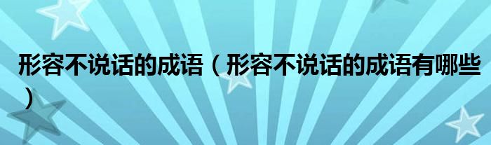大家好,小育來為大家講解下。形容不說話的成語,形容不說話的成語有哪些很多人還不知道,現(xiàn)在讓我們一起來看看吧!