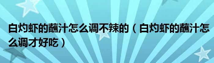 大家好,小育來為大家講解下。白灼蝦的蘸汁怎么調(diào)不辣的,白灼蝦的蘸汁怎么調(diào)才好吃很多人還不知道,現(xiàn)在讓我們一起來看看吧!