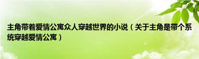 大家好,小育來(lái)為大家講解下。主角帶著愛(ài)情公寓眾人穿越世界的小說(shuō),關(guān)于主角是帶個(gè)系統(tǒng)穿越愛(ài)情公寓很多人還不知道,現(xiàn)在讓我們一起來(lái)看看吧!