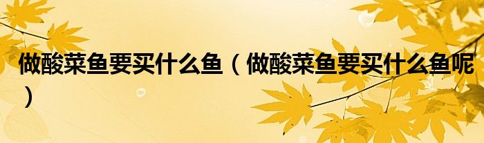 大家好,小育來為大家講解下。做酸菜魚要買什么魚,做酸菜魚要買什么魚呢很多人還不知道,現(xiàn)在讓我們一起來看看吧!