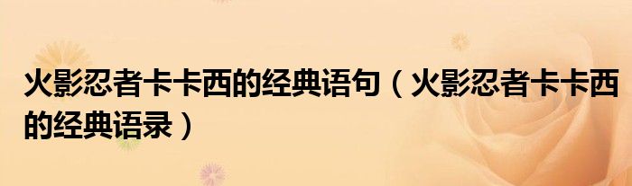 大家好,小育來為大家講解下?;鹩叭陶呖ㄎ鞯慕?jīng)典語句,火影忍者卡卡西的經(jīng)典語錄很多人還不知道,現(xiàn)在讓我們一起來看看吧!