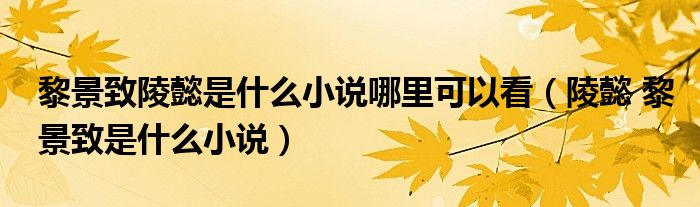 大家好,小育來為大家講解下。黎景致陵懿是什么小說哪里可以看,陵懿 黎景致是什么小說很多人還不知道,現(xiàn)在讓我們一起來看看吧!