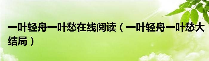 大家好,小育來為大家講解下。一葉輕舟一葉愁在線閱讀,一葉輕舟一葉愁大結(jié)局很多人還不知道,現(xiàn)在讓我們一起來看看吧!