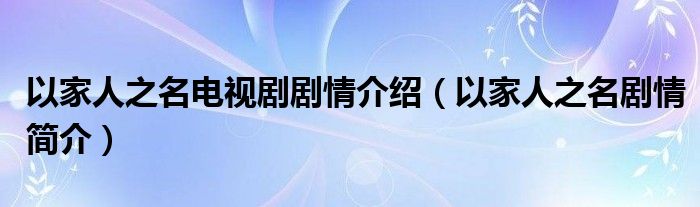 大家好,伊人來為大家解答以上問題。以家人之名電視劇劇情介紹,以家人之名劇情簡介很多人還不知道,現(xiàn)在讓我們一起來看看吧!