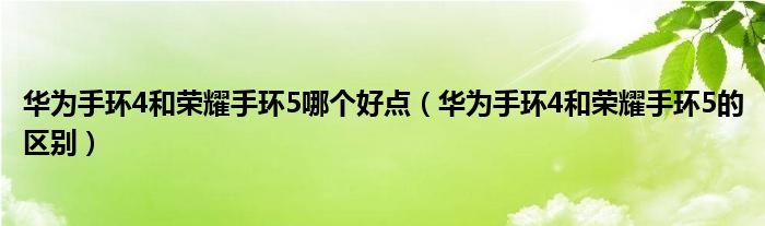 大家好,小育來為大家講解下。華為手環(huán)4和榮耀手環(huán)5哪個好點,華為手環(huán)4和榮耀手環(huán)5的區(qū)別很多人還不知道,現(xiàn)在讓我們一起來看看吧!