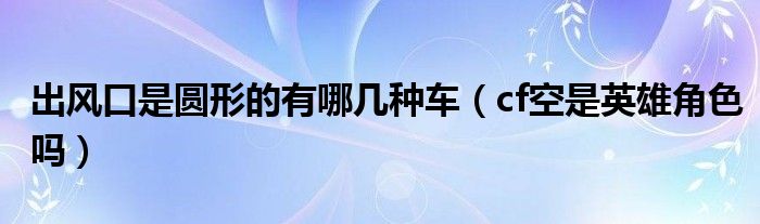 大家好,小育來為大家講解下。出風(fēng)口是圓形的有哪幾種車,cf空是英雄角色嗎很多人還不知道,現(xiàn)在讓我們一起來看看吧!