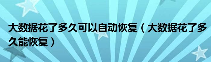 大家好,小育來(lái)為大家講解下。大數(shù)據(jù)花了多久可以自動(dòng)恢復(fù),大數(shù)據(jù)花了多久能恢復(fù)很多人還不知道,現(xiàn)在讓我們一起來(lái)看看吧!