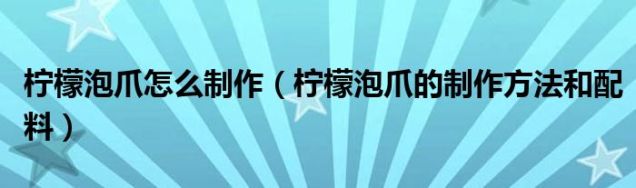 大家好,小育來為大家講解下。檸檬泡爪怎么制作,檸檬泡爪的制作方法和配料很多人還不知道,現(xiàn)在讓我們一起來看看吧!