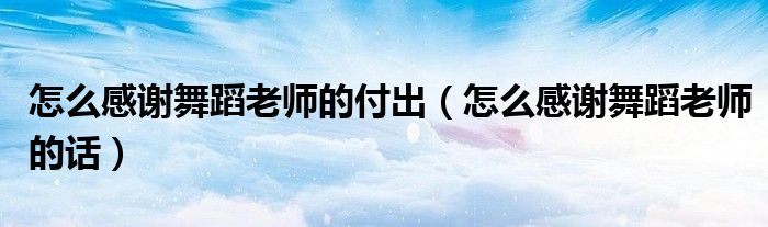 大家好,小育來為大家講解下。怎么感謝舞蹈老師的付出,怎么感謝舞蹈老師的話很多人還不知道,現(xiàn)在讓我們一起來看看吧!