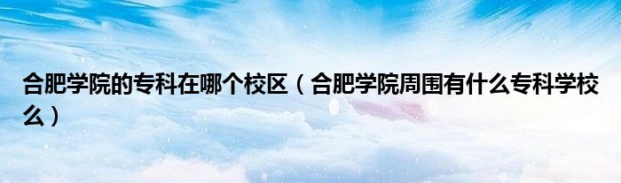 大家好,小育來為大家講解下。合肥學院的??圃谀膫€校區(qū),合肥學院周圍有什么??茖W校么很多人還不知道,現(xiàn)在讓我們一起來看看吧!
