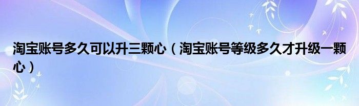 大家好,小育來為大家講解下。淘寶賬號多久可以升三顆心,淘寶賬號等級多久才升級一顆心很多人還不知道,現(xiàn)在讓我們一起來看看吧!