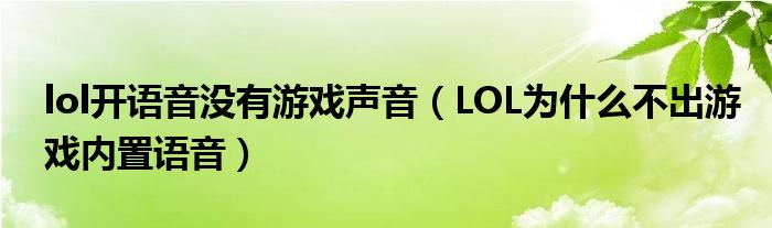 大家好,小育來為大家講解下。lol開語音沒有游戲聲音,LOL為什么不出游戲內(nèi)置語音很多人還不知道,現(xiàn)在讓我們一起來看看吧!