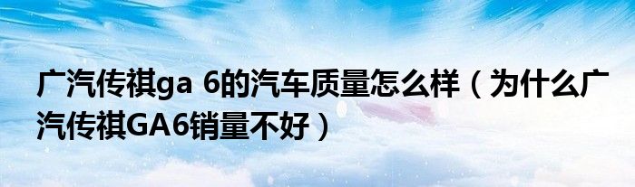 大家好,小育來為大家講解下。廣汽傳祺ga 6的汽車質量怎么樣,為什么廣汽傳祺GA6銷量不好很多人還不知道,現在讓我們一起來看看吧!