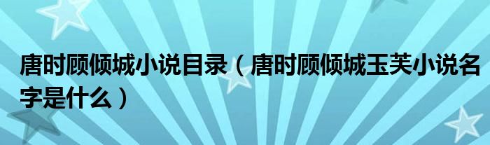 大家好,小育來為大家講解下。唐時顧傾城小說目錄,唐時顧傾城玉芙小說名字是什么很多人還不知道,現(xiàn)在讓我們一起來看看吧!