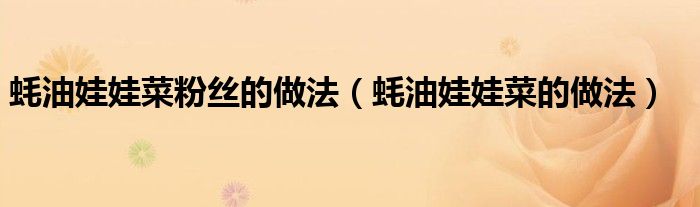 大家好,小育來為大家講解下。蠔油娃娃菜粉絲的做法,蠔油娃娃菜的做法很多人還不知道,現(xiàn)在讓我們一起來看看吧!