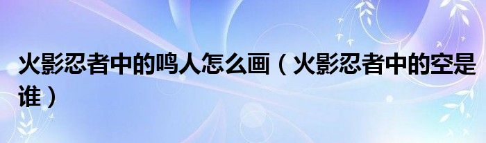 大家好,小育來為大家講解下?;鹩叭陶咧械镍Q人怎么畫,火影忍者中的空是誰很多人還不知道,現(xiàn)在讓我們一起來看看吧!
