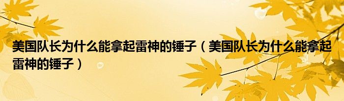 大家好,小育來為大家講解下。美國隊長為什么能拿起雷神的錘子,美國隊長為什么能拿起雷神的錘子很多人還不知道,現(xiàn)在讓我們一起來看看吧!