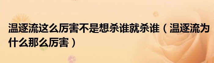 大家好,小育來(lái)為大家講解下。溫逐流這么厲害不是想殺誰(shuí)就殺誰(shuí),溫逐流為什么那么厲害很多人還不知道,現(xiàn)在讓我們一起來(lái)看看吧!