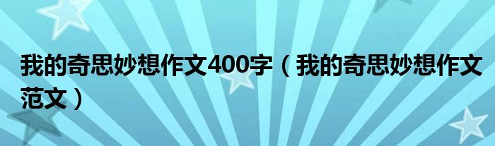 大家好,伊人來(lái)為大家解答以上問(wèn)題。我的奇思妙想作文400字,我的奇思妙想作文范文很多人還不知道,現(xiàn)在讓我們一起來(lái)看看吧!