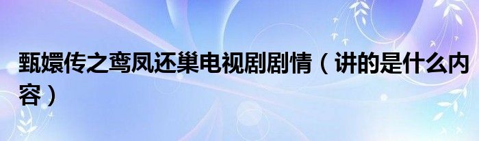 大家好,伊人來為大家解答以上問題。甄嬛傳之鸞鳳還巢電視劇劇情,講的是什么內(nèi)容很多人還不知道,現(xiàn)在讓我們一起來看看吧!