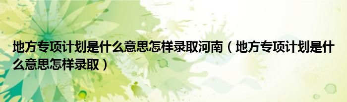 大家好,小育來為大家講解下。地方專項計劃是什么意思怎樣錄取河南,地方專項計劃是什么意思怎樣錄取很多人還不知道,現(xiàn)在讓我們一起來看看吧!