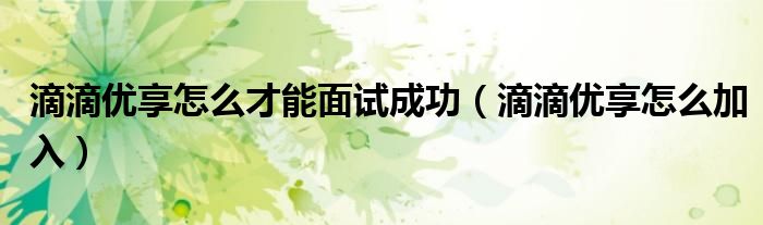 大家好,小育來為大家講解下。滴滴優(yōu)享怎么才能面試成功,滴滴優(yōu)享怎么加入很多人還不知道,現(xiàn)在讓我們一起來看看吧!