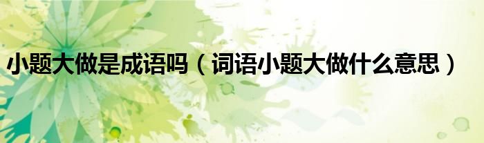1、小題大做,漢語成語,拼音是Xi m: o t d zu,意思是把一個小題目做成一篇大文章,比喻把一件小事不當回事,有故意夸大的意思。