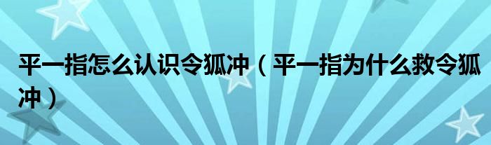 大家好,小育來為大家講解下。平一指怎么認識令狐沖,平一指為什么救令狐沖很多人還不知道,現(xiàn)在讓我們一起來看看吧!