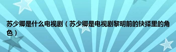 大家好,伊人來為大家解答以上問題。蘇少卿是什么電視劇,蘇少卿是電視劇黎明前的抉擇里的角色很多人還不知道,現(xiàn)在讓我們一起來看看吧!