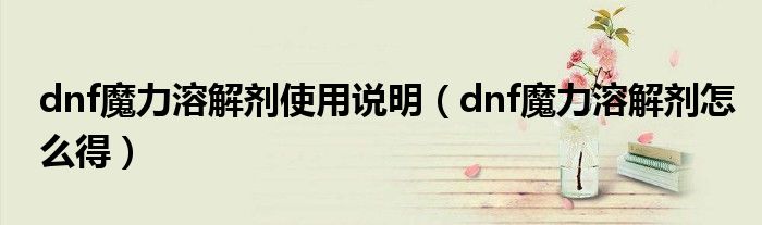 大家好,小育來(lái)為大家講解下。dnf魔力溶解劑使用說(shuō)明,dnf魔力溶解劑怎么得很多人還不知道,現(xiàn)在讓我們一起來(lái)看看吧!
